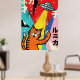 Colorful Pop Art Cat with UFO Illustration Retro Poster