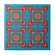 Bright and colorful tiled geometric pattern using a psychedelic color palette.