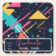 Colorful Retro 80's Graduation Party Square Paper Coaster