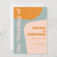 Abstract shapes retro vintage 70s style unique wedding invitation with "the wedding of" bold typography in a soft mute trendy modern dusty blue, pale pink, and orange groovy color palette. +++++++ Please note that all the colors are changeable. ++++++++++++ The invitation is suitable for casual stylish contemporary weddings.