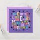 This artwork radiates mid-century modern energy, layering vibrant rectangles and squares of orange, green, blue, pink, purple, and white within a black grid of lines and dots. The composition is punctuated by playful black starbursts, evoking the optimism of the atomic age. Set against a deep purple background, the symmetry and bold color contrasts create a dynamic rhythm that feels both retro and timeless. The piece captures the spirit of 1950s–1960s design while offering a fresh, contemporary vibrancy.