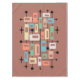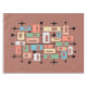 This artwork channels the mid-century modern spirit, weaving together rectangular blocks of muted peach, green, blue, beige, and white against a warm reddish-brown ground. Black lines and dots intersect the grid, evoking atomic-era networks, while scattered starburst shapes punctuate the composition with playful energy. The balance of geometry and whimsy captures the optimism and futurism of 1950s–1960s design, making it both nostalgic and timeless.