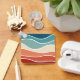 Abstract retro style illustration of colorful (red, blue, orange, navy blue, beige, turquoise) waves decoration on white background. You can add your name/monogram to personalize the item.