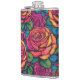 Colorful Roses Psychedelic Bright Flowers Retro Hip Flask