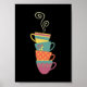 Colorful stacked tea/coffee cups, steaming mugs poster