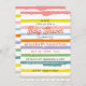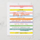 A fun, colorful invitation with a cute font. Stripes on back also with text you can change to a quote or message.