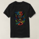I give wanted to give this a 4 instead of a 5 because these Basic DARK T0shirts run unexpectedly SLIM or Narrow. Which is great if you do not have a potbelly, but I have a paunch. It isn't the shirt's fault that I've got a beer belly. The design and shirt itself is a quality cotton shirt. The color is more of a deep purple, but still a very pretty color. The Basic DARK T-shirts run a bit SLIMMER than the Basic Ts. The neck is a fraction narrower (or seems to be narrower) also. I'm a paunchy middle-aged woman and my neck is 12 inches (31cm) thick and the neckline fell about the same as in the photo of the man, and I had the desire to tug it a bit. So if you're a thick necked man or like loose shirts, be aware these are slimmer shirts. Once I get rid of my lockdown paunch it'll look great. The shirt washed well in cold water with no apparent bleeding. We don't have a dryer, so it hung dry. Did not shrink. Love the colors and the design. The design looks smaller on my shirt than it does on the model on-line. But still, it looks good on the shirt. The printing looks as it does on the model, just the size seems fractionally smaller. Washed garment in cold water, hung dry and design appeared unaffected.