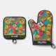 Colorful Tropical Flowers Pattern Oven Mitt & Pot Holder Set