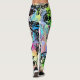 Colorful urban graffiti patchwork pattern leggings featuring bold abstract blocks, expressive brush strokes, scribbles, stars, and mixed-media textures in bright blue, yellow, pink, orange, and black. Energetic and edgy with a modern street art aesthetic, this seamless design is ideal for graffiti art lovers, maximalist style fans, creative teens, and contemporary art enthusiasts.