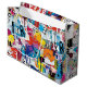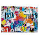 Colorful urban graffiti patchwork pattern gift bag featuring bold abstract blocks, expressive brush strokes, scribbles, stars, and mixed-media textures in bright blue, yellow, pink, orange, and black. Energetic and edgy with a modern street art aesthetic, this seamless design is ideal for graffiti art lovers, maximalist style fans, creative teens, and contemporary art enthusiasts.