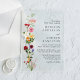 Share your wedding details with romantic, garden-inspired style using this colorful watercolor wildflower acrylic wedding invitation. The design features a graceful vertical floral arrangement along the left side, displaying vibrant watercolor blooms in shades of pink, orange, burgundy, purple, red, and yellow accented with delicate greenery on a clear acrylic background. Your names and ceremony details appear on the right in a clean, refined layout that allows the florals and typography to balance beautifully. Ideal for garden weddings, outdoor ceremonies, estate venues, and elegant floral weddings, this acrylic invitation offers a polished and memorable presentation for your special day.