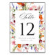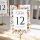 Guide your guests to their seats with this Colorful Watercolor Wildflower wedding table number card, featuring vibrant wildflowers in shades of pink, orange, burgundy, purple, red, and yellow accented with soft greenery. “Table” is displayed at the top in elegant calligraphy script, with the table number, couple’s names, and wedding date shown below in a clean, refined layout. The botanical floral frame surrounds the design beautifully, creating a romantic focal point that pairs perfectly with garden weddings, outdoor receptions, and floral wedding themes. This card measures 3.5"x5". Edit each table number individually and add them to your cart to ensure a smooth ordering process.