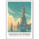 Colossus of Rhodes retro vector travel design. The Colossus of Rhodes, one of the Seven Wonders of the Ancient World, was a towering bronze statue of the sun god Helios that once stood at the entrance of Rhodes harbor. Though it no longer exists, it remains a symbol of ancient Greek engineering, mythology, and maritime power.