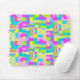 A mousepad with a colourful abstract design made from a colourful abstract vector graphic in magenta, blue, pink, green and yellow.