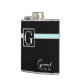 Black flask with changeable accent colour and monogram. Personalise monogram and text as needed and change background colour to compliment your wedding.