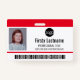 Bright Red and White - A basic business design that highlights your office logos and employee name. You can add a scan bar code on the front and back. You can also change the colour of the background. Change the colour for each department.