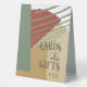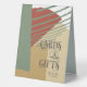 Abstract colour blocking in a soft, warm colour palette provides a striking background for the pieces in this contemporary wedding suite. The tent-style 'Cards & Gifts' sign shown here is perfect for the bride who is planning a stylish summer or autumn wedding. Search ID740 to see other colour options and additional products with this modern design.