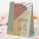 This table tent sign is the perfect size for our tables and easy to read. I also like the material it is made with and no worries about it falling or sliding. Just perfect! Everything about this card is perfect. I like that it says what we want on the front and on the back we were able to personalize a message for our guests.