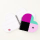 Contemporary, colourful and clear are the hallmarks of this eye-catching notebook. The front of this super-stylish notebook is divided into four sections in an attractive colour-block design. The sections are magenta, black, turquoise and pink, bringing a vibrant splash of colour to your everyday note-taking. The back of the notebook is a plain magenta pink. Personalise this chic and trendy cover with an initial, which will form a modern monogram on the top right of the design.