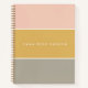 A stylish colour block notebook with 3 horizontal stripes in blush pink, mustard gold and grey in a modern minimalist design style. The text can easily be customised with your name for the perfectly personalised gift or accessory!