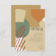 Abstract colour blocking in a soft, warm colour palette provides a striking background for the pieces in this contemporary wedding suite. The wedding details card shown here is an eye-catching way to announce important information for your wedding guests. Easily add all your event details using the provided template. Search ID740 to see other colour options and additional products with this design.