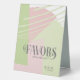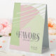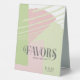 Abstract colour blocking in a cheerful colour palette of rose pink and spring green provides a striking background for the pieces in this contemporary wedding suite. The tent-style 'Favours' sign shown here is perfect for the bride who is planning a modern spring wedding. Search ID740 to see other colour options and additional products with this modern design.