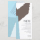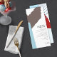 Abstract colour blocking in a cheerful winter colour palette of blues and brick red provides a striking background for the pieces in this contemporary wedding suite. The wedding 'Menu' card shown here is an eye-catching addition to your table decor. Add your menu selections, initials and wedding date using the provided template. Search ID740 to see other colour options and additional products with this design.