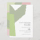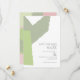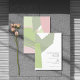 Abstract colour blocking in a cheerful colour palette of rose pink and spring green provides a striking background for the pieces in this contemporary wedding suite. The wedding 'Save the Date' card shown here is perfect to remind guest of an upcoming spring wedding. Easily add all your event details using the provided template. Search ID740 to see other colour options and additional products with this design.