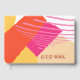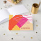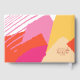 Abstract colour blocking in a bold colour palette of hot pink, tangerine orange and golden yellow provides a striking background for the pieces in this contemporary wedding suite. The wedding guest book shown here is perfect for the bride who is planning a modern summer wedding. Easily Add the bride and groom's names and wedding date using the provided template. Search ID740 to see other colour options and additional products with this design.