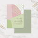 Abstract colour blocking in a cheerful colour palette of rose pink and spring green provides a striking background for the pieces in this contemporary wedding suite. The wedding website enclosure card shown here is an eye-catching way to announce important information for your wedding guests. Easily your names and web address using the provided template. Search ID740 to see other colour options and additional products with this design.