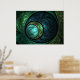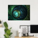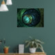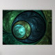 Bright green and blue colourful textures form together into a layered, circular, fractal abstract.