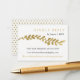 Gold leaf elegant minimalist design. Find matching items in the collection listing below. **The gold glitter in this item is faux gold glitter and will print flat as shown. No actual gold glitter will be on this item.** To change the primary background colour to match your wedding colour scheme, click on the blue "Customise" button and then edit the colour under the "Select a background colour" section.