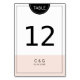 Blush and black modern chic simple minimalist table number card design, perfect for modern wedding or spring wedding. The blush pink background colour can be changed to match your wedding theme, just click "Customise it!" button, then edit colour under "Printed Background Colour" section.