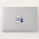 Do you like cats? Do you like cute stickers? This sticker has a grey cat dressed in a blue and white marching band uniform while holding a blue flag.