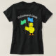 A cute yellow chick holding flags is a humourous design for marching band and winter indoor guard members.