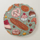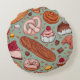 Colour hand drawn sketch style bakery patten. Diff Round Cushion
