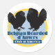 This is the colour version of the logo sporting a pair of black Belgian d'Anvers on a blue and yellow background.