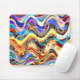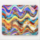 An mouse pad case with a colourful abstract design made up of a mix of swirling wavy colours.