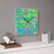This is a multi-layered scribbly design in bright colours and soft airbrush lines based in a dreamy blue-green, for people who dream in colour! Trendy dynamic scribble pattern in colours of blue, yellow, pink and green, lively, spontaneous, artsy expression, for stocking stuffer, kitchen accessories, decor enhancement, a fun artsy accent everyone will love. Perk up any space with a lively burst of abstract expression. You can also upload your own photo instead of the current design if you want. Your choice of hand colour and clock style. Cheerful and colourful contemporary pop art, expressive art by Sylvia Rose.