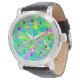 This is a multi-layered scribbly design in bright colours and soft airbrush lines based in a dreamy blue-green, for people who dream in colour! Trendy dynamic scribble pattern in colours of blue, yellow, pink and green, lively, spontaneous, artsy expression, for special occasion or any time, a fun artsy fashion accent everyone will love. Accessories any attire with a lively burst of abstract expression. You can also upload your own photo instead of the current design if you want. It will appear behind the black numbers. Excellent choice of many watch styles for men, women, kids. Cheerful and colourful contemporary pop art, expressive art by Sylvia Rose.
