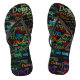 Add a name or any other word to create a stylish typographic pattern with different font styles and colours on black (custom-colour) flip-flop for women
