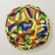 Colour patches on curved beige strips round cushion