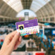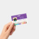 A purple and white horizontal photo ID badge with a doodle illustration of colour pencils at the bottom . Personalise it with the employee's 2x2 inches portrait photo , her or his name and title and the school name and address . It is an ideal ID for art teacher , art docent or any other elementary school staff .