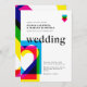 A trendy design-led flat wedding invitation card featuring a bright pop of colour in CMYK print styling.