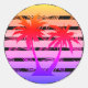 Colour Splash Palm Tree Silhouette Black Stripe Classic Round Sticker