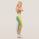 Colour stripped Capri Leggings with a pale yellow waist band. The front and back have different stripped colours, so when you walk away, it looks like you are wearing something different.......so cool.