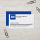 A business card with a 0.75inch square tonal or colour tab in the top left for monogram initials or could be alternatively used for a logo. Company name and business type aligned next to the tab. Name and job title are arranged above a horizontal line, with address, telephony, email and web details below. The reverse side of the card has the same initials, company name and business type on a flat colour background but arranged and aligned to the centre of the card. This template can be easily customised with your own details or further customised with your own logo or less standard fonts etc, don't forget to customised both sides.
