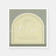 With a colour palette from ivory to spring green and dark moss, this wedding collection features a handwritten script font and eucalyptus leaf accents to add that wonderful modern touch. The paper napkin shown here has all the above with a striking arch design in shades of green topped by elegant script text 'to love'. Add your personal message, names and wedding date easily using the provided template. Search ID901 to see other colour choices and coordinating pieces for this unique wedding collection.
