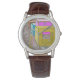 These dramatic watches are perfect for the friend who is a bit different. Counter clockwise numbers for people who are always short on time - or just for people who like to be a bit different! This one is from a colourful abstract design reminiscent of children's blocks.