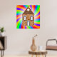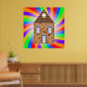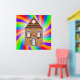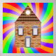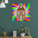 A brick house surrounded by very colourful rainbow colours. This design looks really effective on these Poster